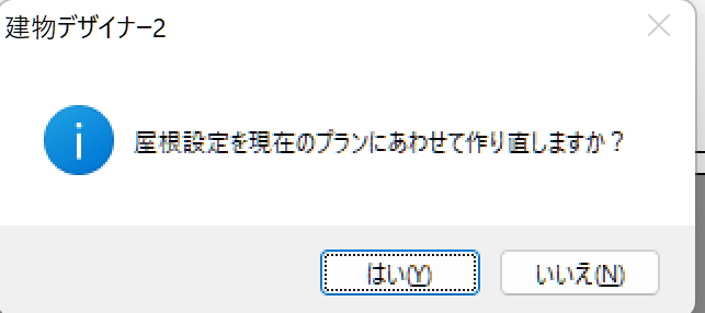 このとき、「屋根設定を現在のプランに合わせて作り直しますか?」と聞かれます。