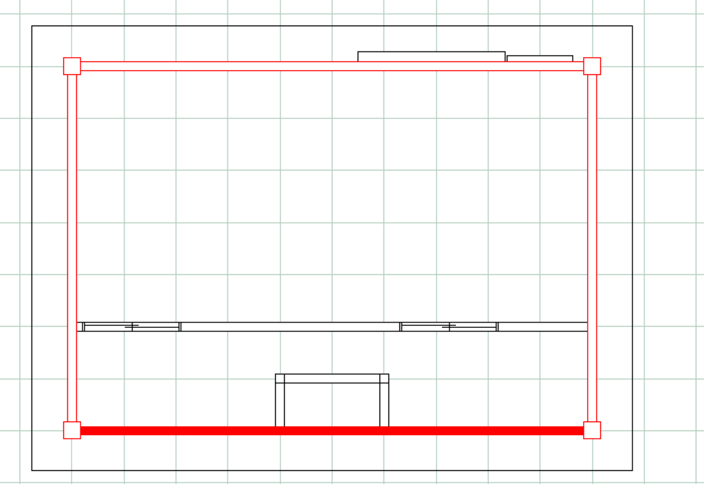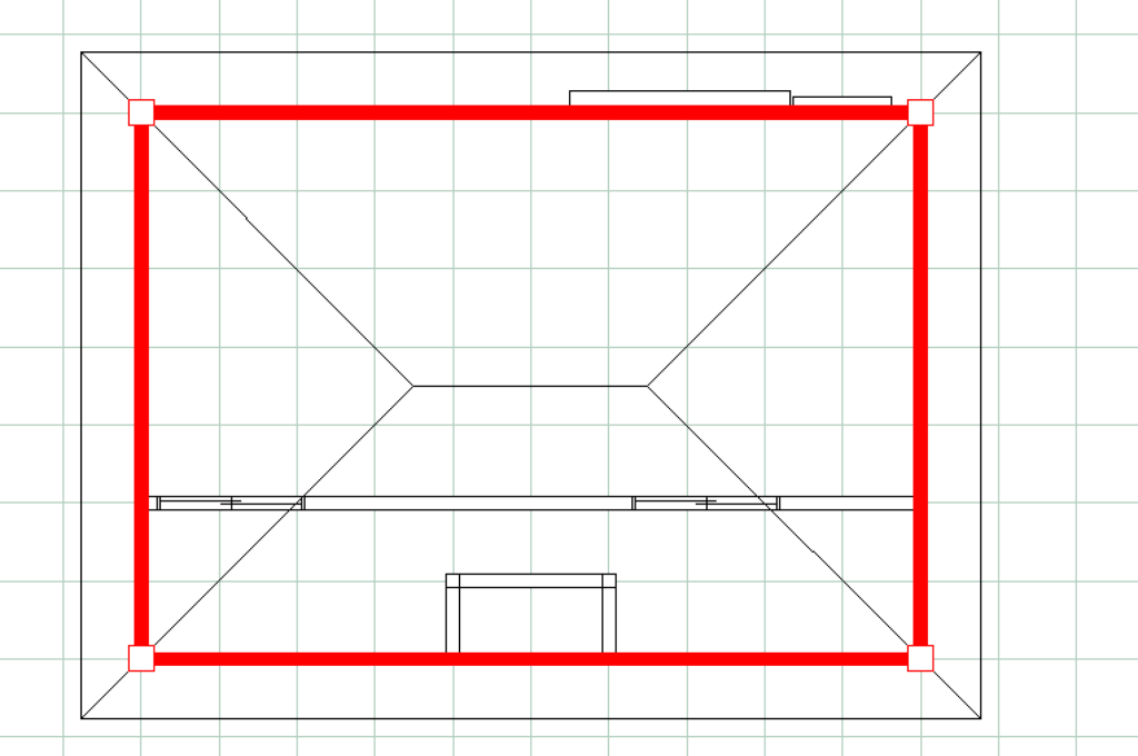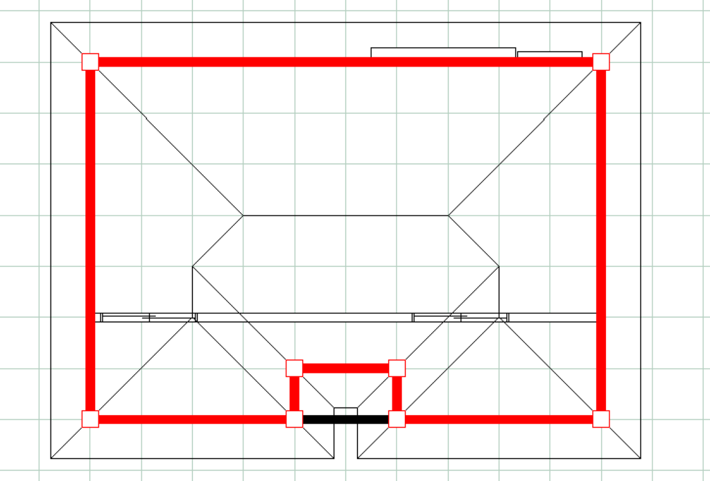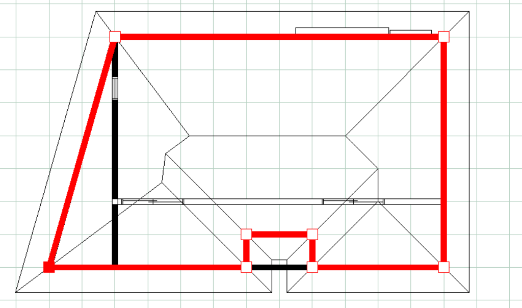 屋根レイヤーで屋根を選択すると、現在の屋根の形状が赤い線で表示されます。