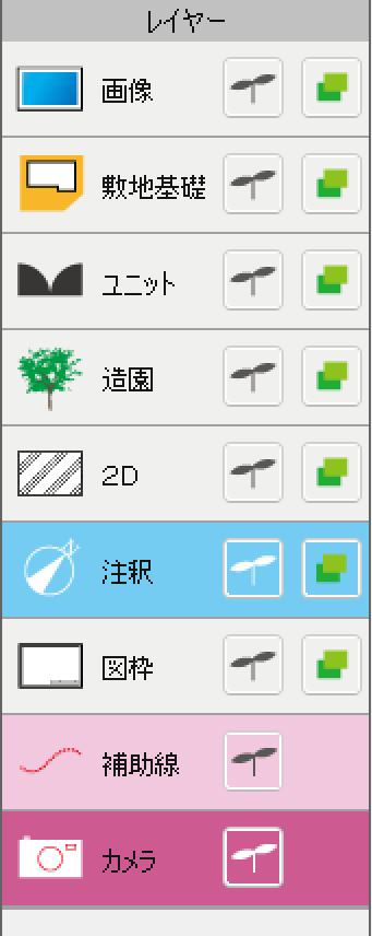 画像を追加するときは「カメラ」レイヤーを使いますが、平面図に追加された画像は「画像」レイヤーに移ります。