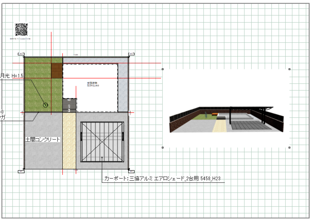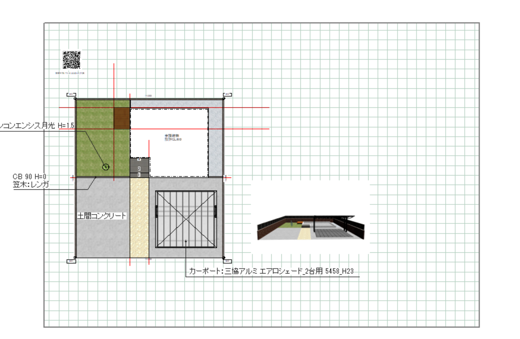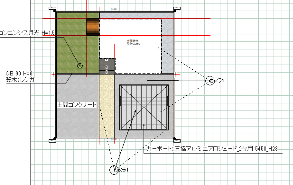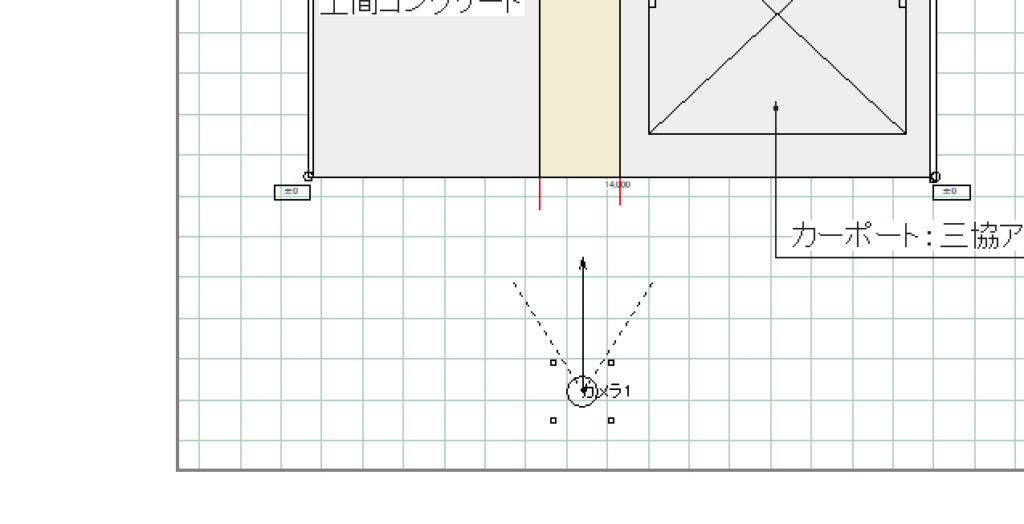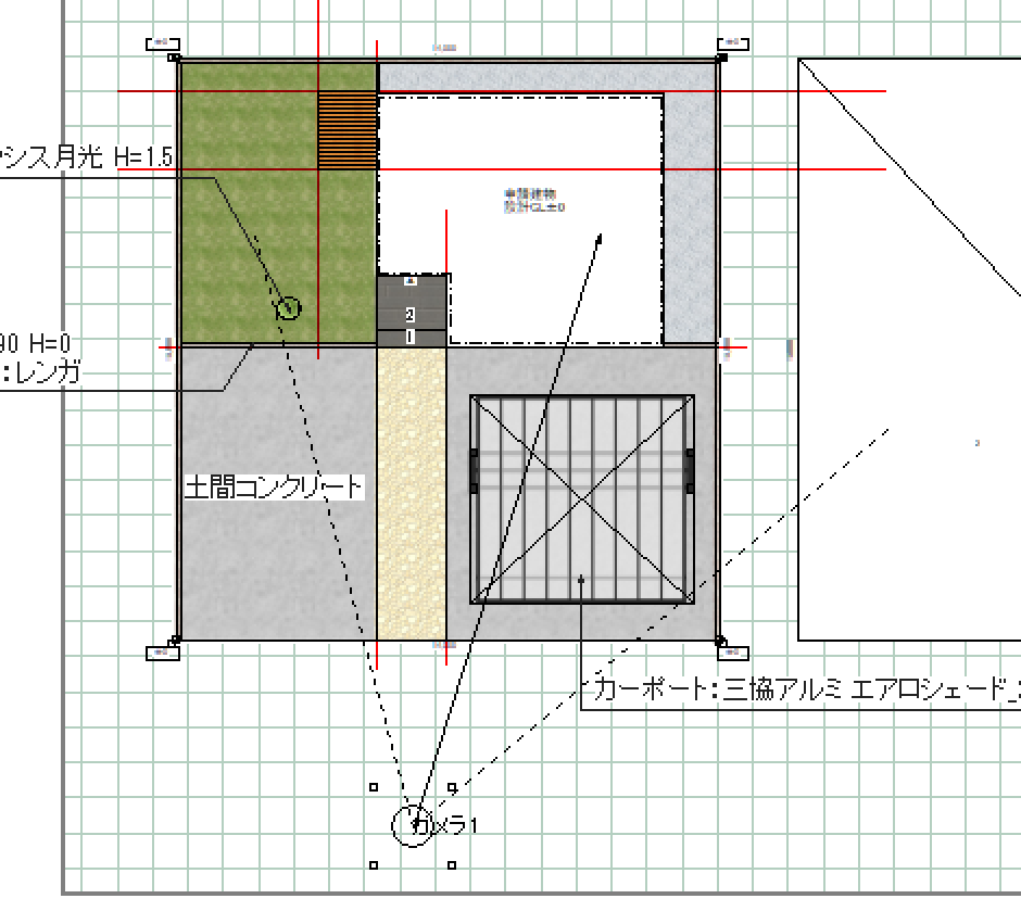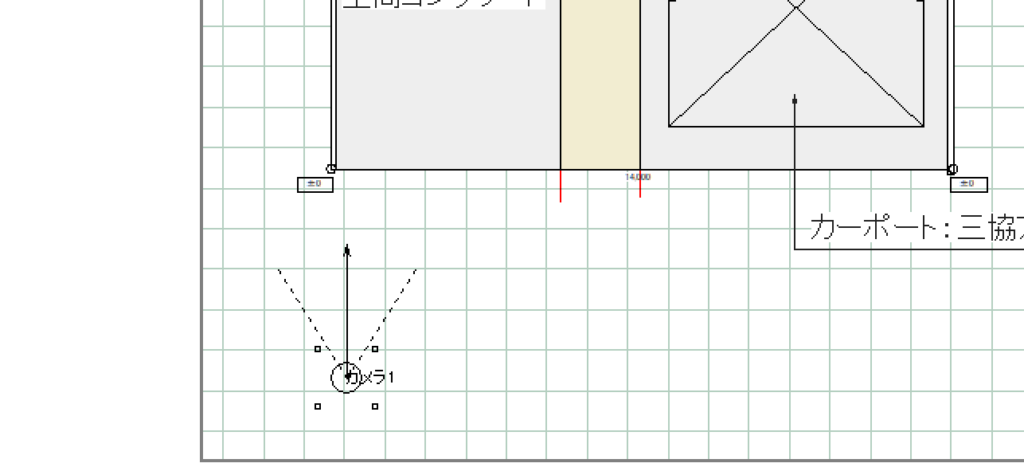 例えば、リアルタイムパースで以下のようにカーポートがフォーカスされているとき、
