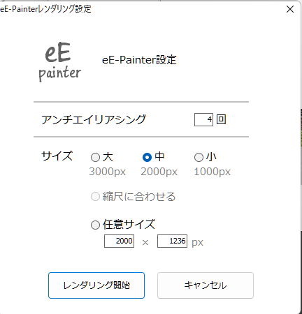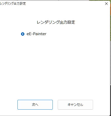 レンダリング出力設定で「eE-Painter」が選択された状態になっているので次へをクリックします。