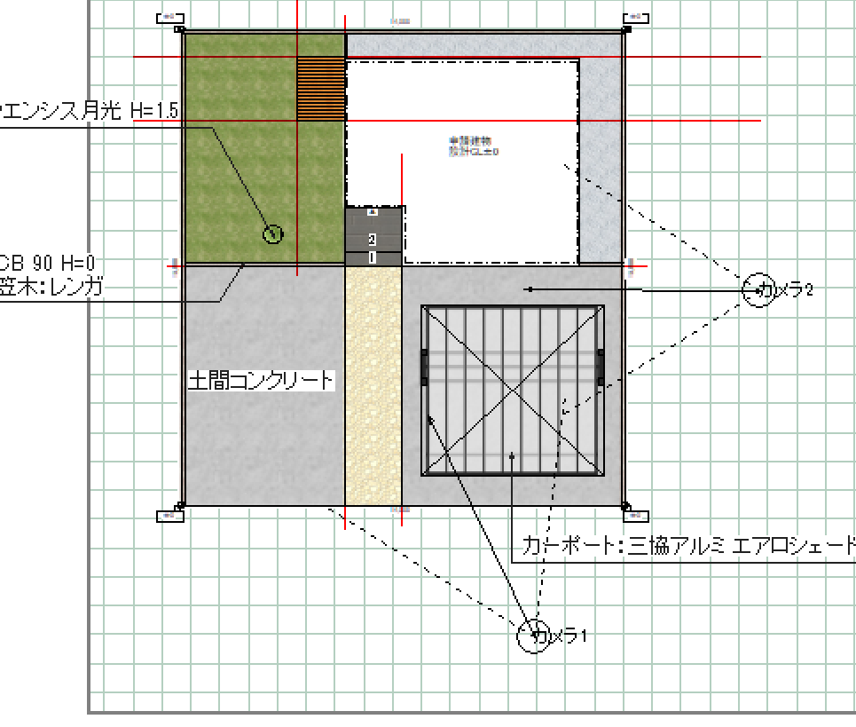 平面図上のカメラもカーポートを指しています。
