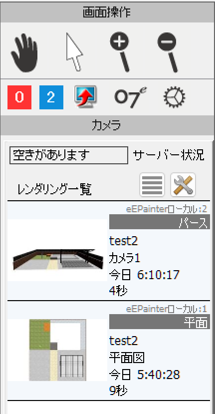 すると、平面図の右側のメニューにレンダリングの進捗状況が表示されます。