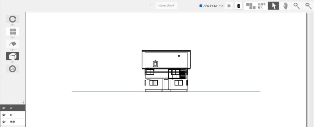 3Dプレビューレイヤーでは作成した家の間取りを確認することができます。