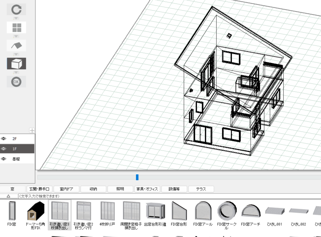 - 【田】平面図の編集。壁の高さ、サッシの変更、間取りの作成。