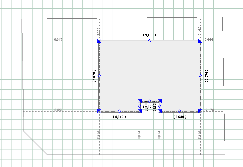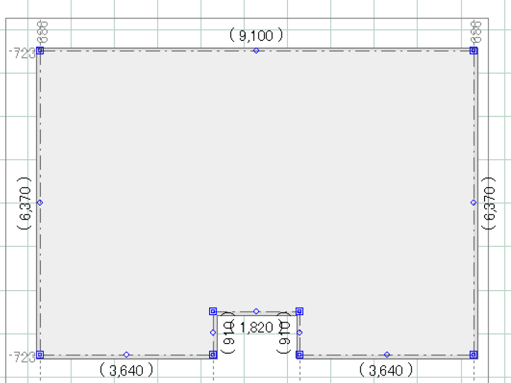 建物敷地を追加したままの状態では各辺の寸法に()がついています。