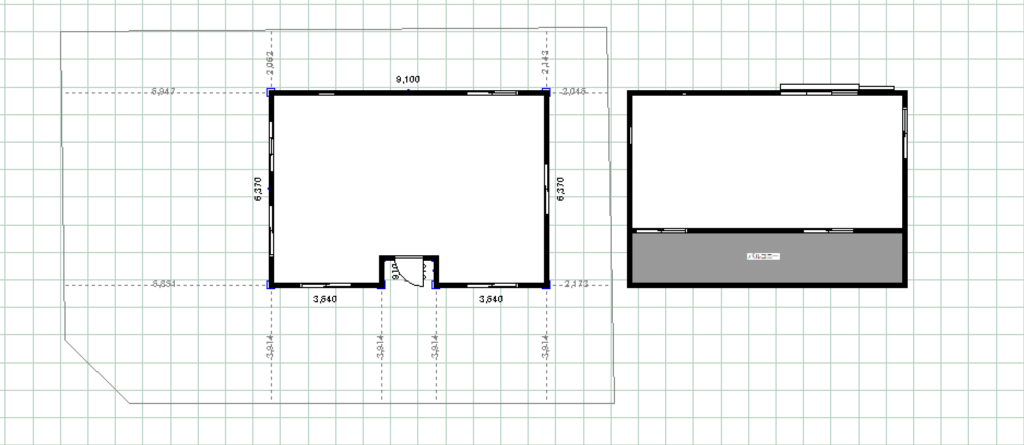 まずは、敷地基礎と建物基礎を描きます。