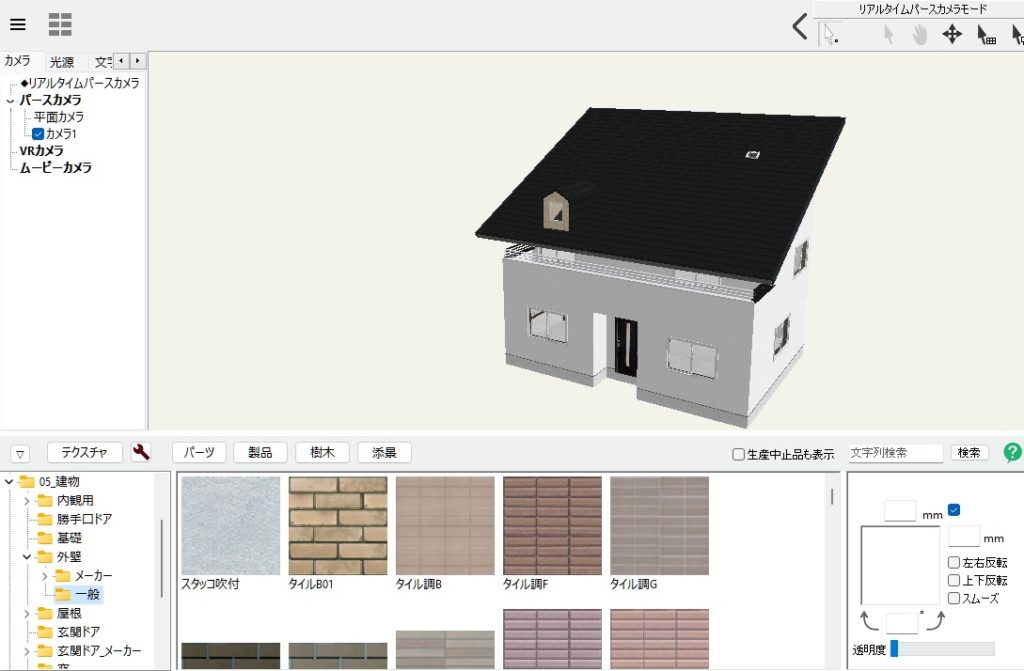 中でも建物デザイナーというソフトを使うと、作成した建物基礎に対して3Dの家を自動で作成してくれます。とても優れた機能です。