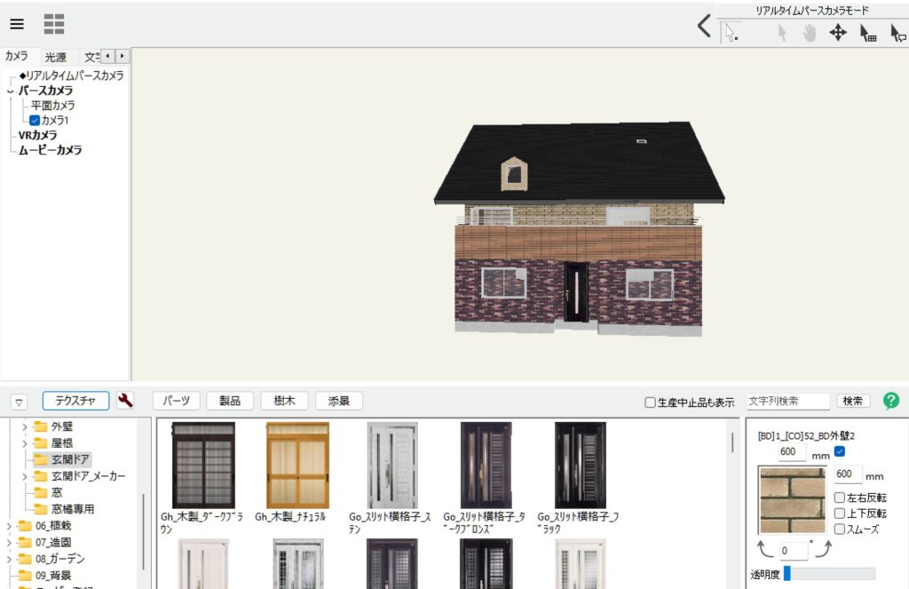 リアルタイムパースで玄関ドアも好きなものに入れ替えることができます。