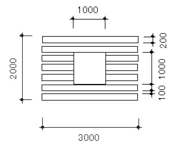 テーブルの大きさを2 x 3mとし、真ん中に1m四方の穴を開けます。