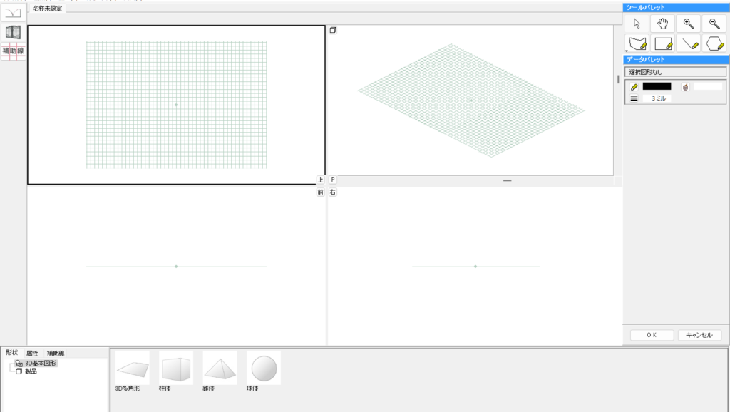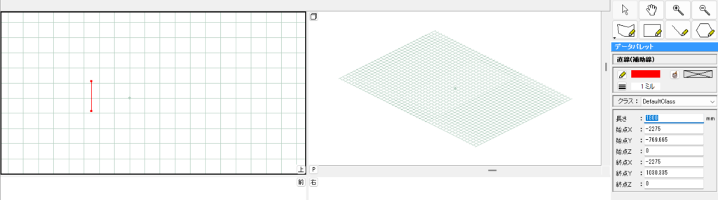 補助線は少し長めに描いておくのがポイントです。後ほど3D図をドロップするときに線と線の隙間があると正しくドロップできません。
