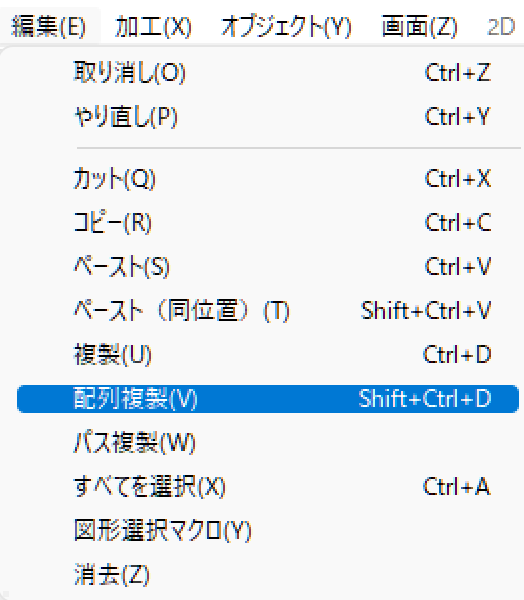 補助線を選択して、上部メニューの「編集」>「配列複製」を選択します。