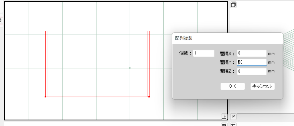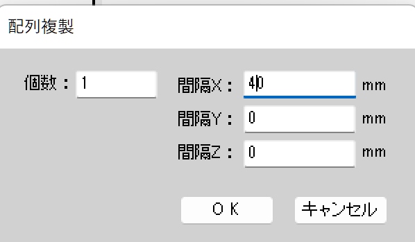 メニューが表示されるので、「個数:1」「間隔X:40」と入力します。