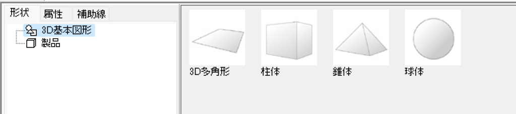 下側メニューの「形状」を選択して「柱体」をドラッグします。