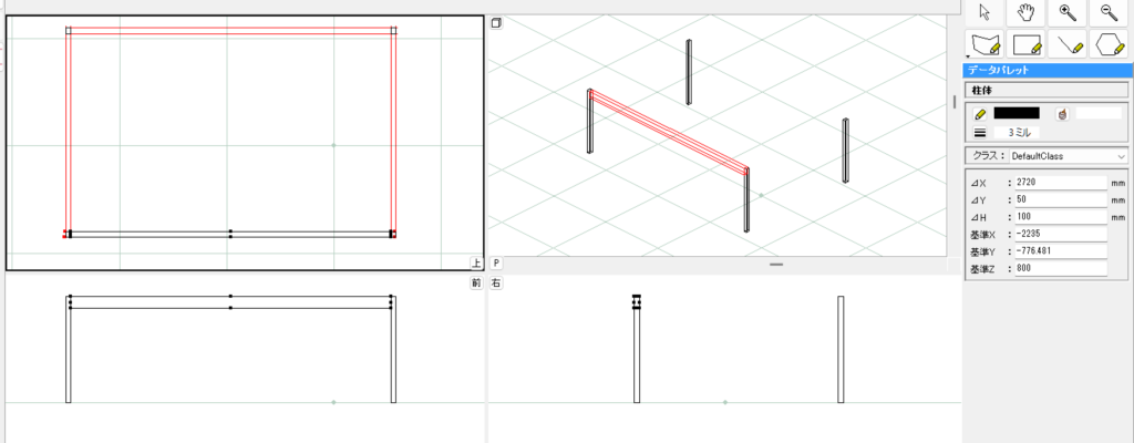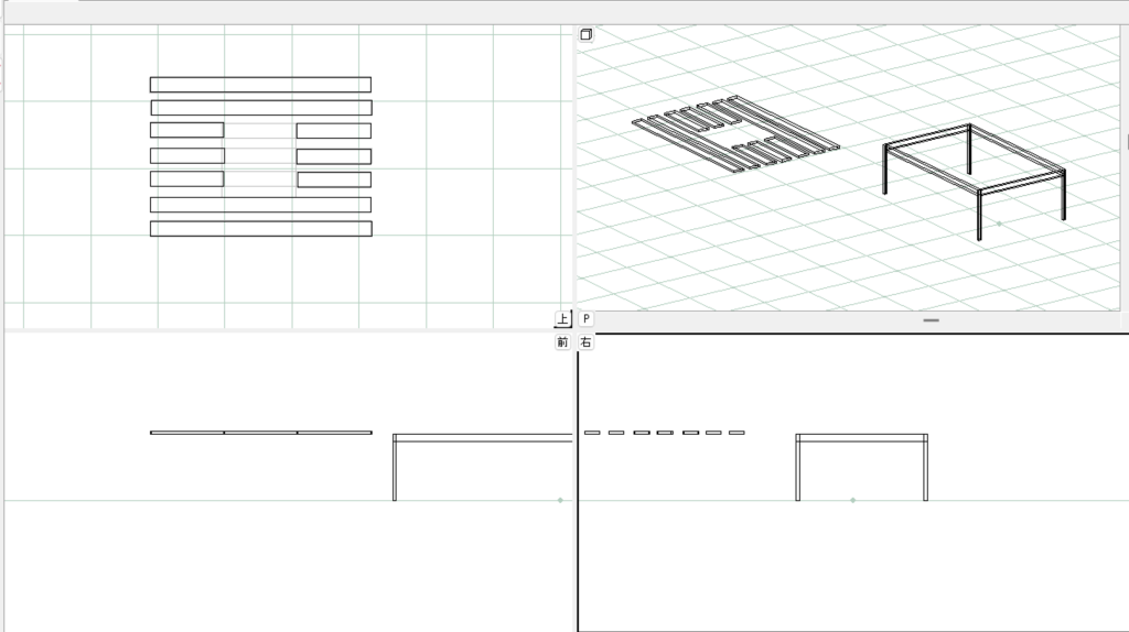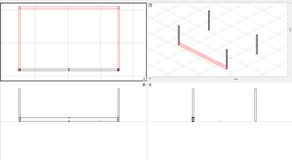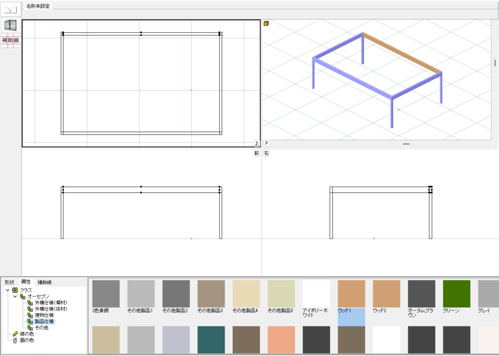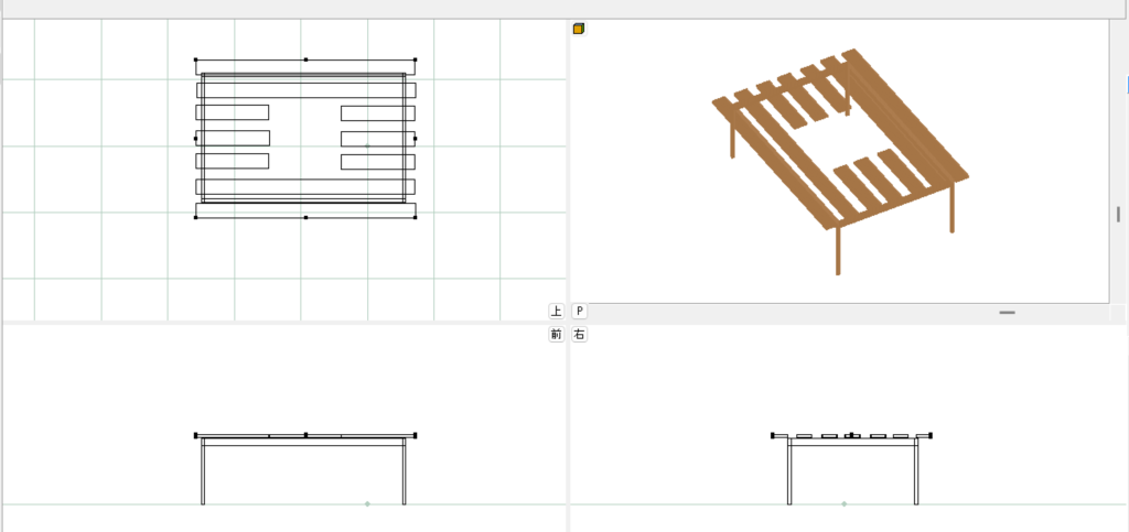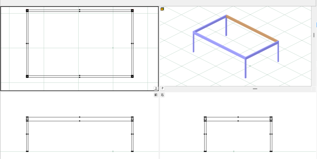 まとめて色を適用したい場合は、平面図上で ctrl + a をクリックし全ての3D図形を選択した状態にします。