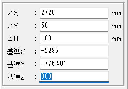 基準が0になっているので、テーブル脚の長さから、梁の高さを引いた数値を入力します。