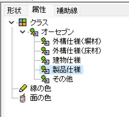下側メニューの「属性」>「クラス」>「オーセブン」>「製品仕様」に進みます。