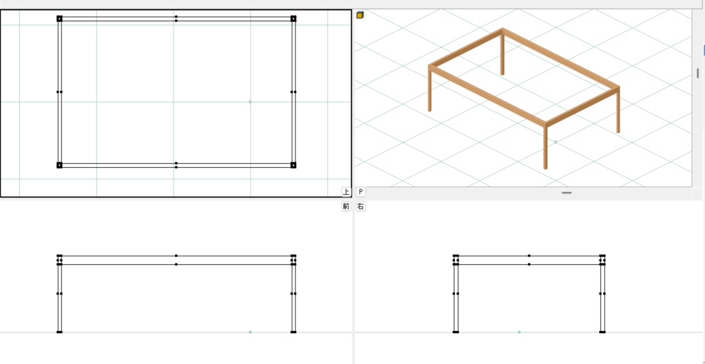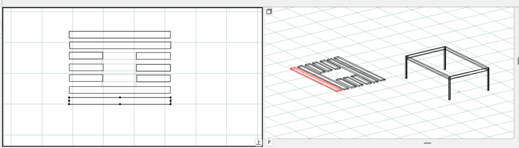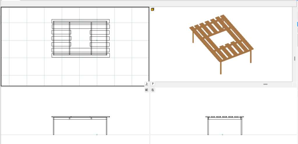 天板は真ん中をくり抜きたいため、2Dレイヤーで天板図を作成してから3D図を作成します。