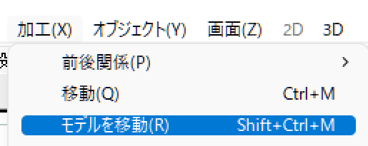 上部メニューの「加工」>「モデルを移動」を選択します。