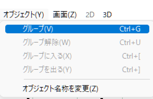 天板を全て選択した状態で「オブジェクト」>「グループ」を選択し、グループ化します。