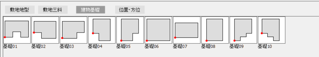 建物基礎の基本形状が表示されるので、実際の建物の形状に近いものを選び平面図にドラッグ&ドロップします。