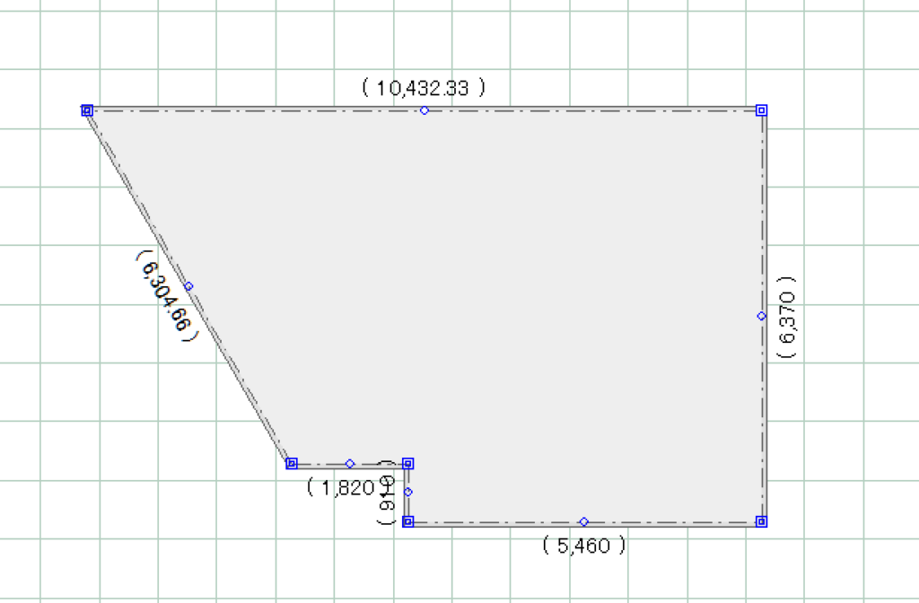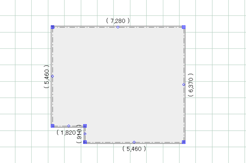 数値を入力してEnterキーをクリックしていきます。時計回りで寸法を確定させていきます。