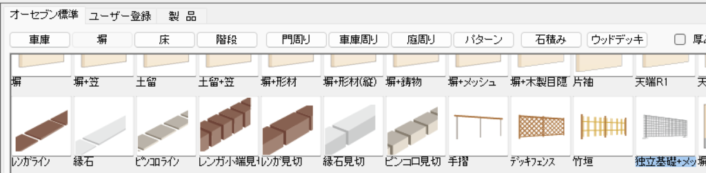 「塀」タブの中にある「独立基礎+メッシュ」を選択します。