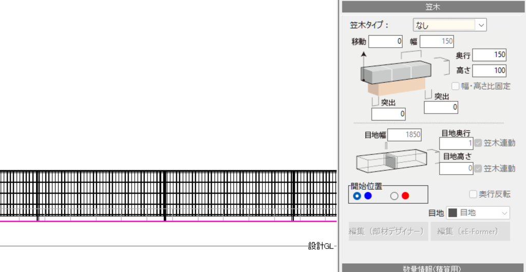 独立基礎をクリックすると、右側に「笠木」というメニューが表示されます。