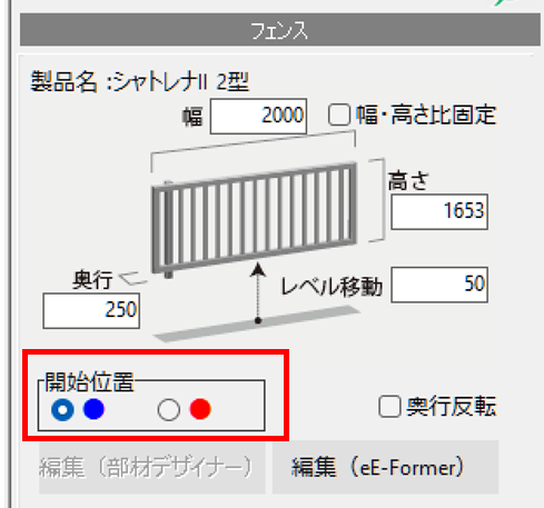 フェンスメニューの中に「開始位置」という項目があります。デフォルトは青色が選択されているので、赤色を選択します。