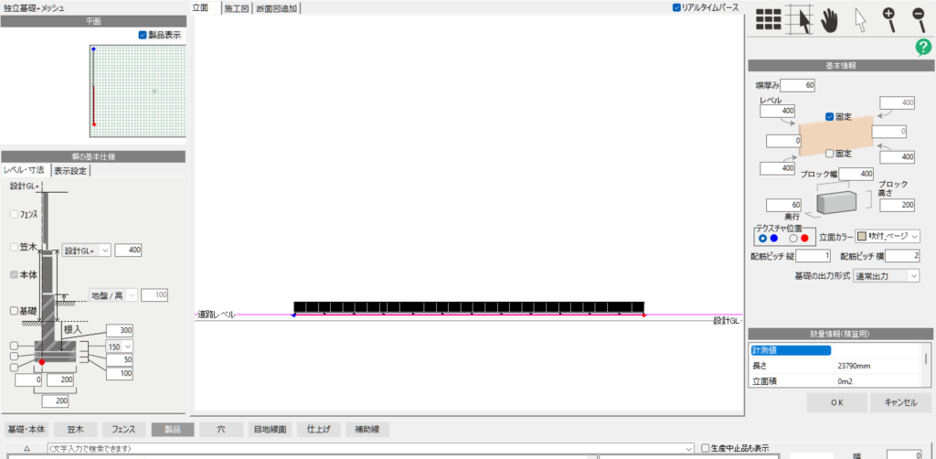 独立基礎&製品を指定したフェンスが作成できました。