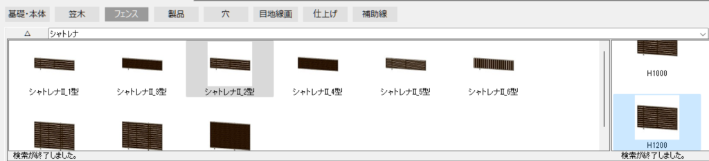 フェンスの種類を選択すると、右側に高さのラインナップが表示されます。