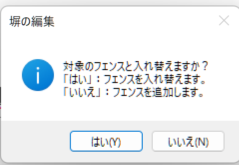 「対象のフェンスと入れ替えますか?」と聞かれるので、「はい」を選択します。