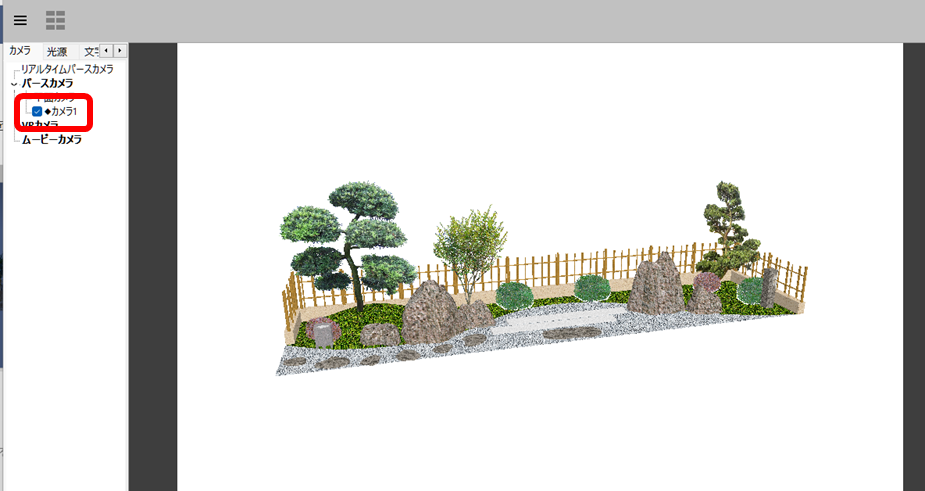 まずは、リアルタイムパースを開いてカメラを指定します。