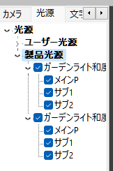 ライトの光を強くしたいときは、左メニューの製品の中のメインと書かれた項目の上で右クリックをおします。