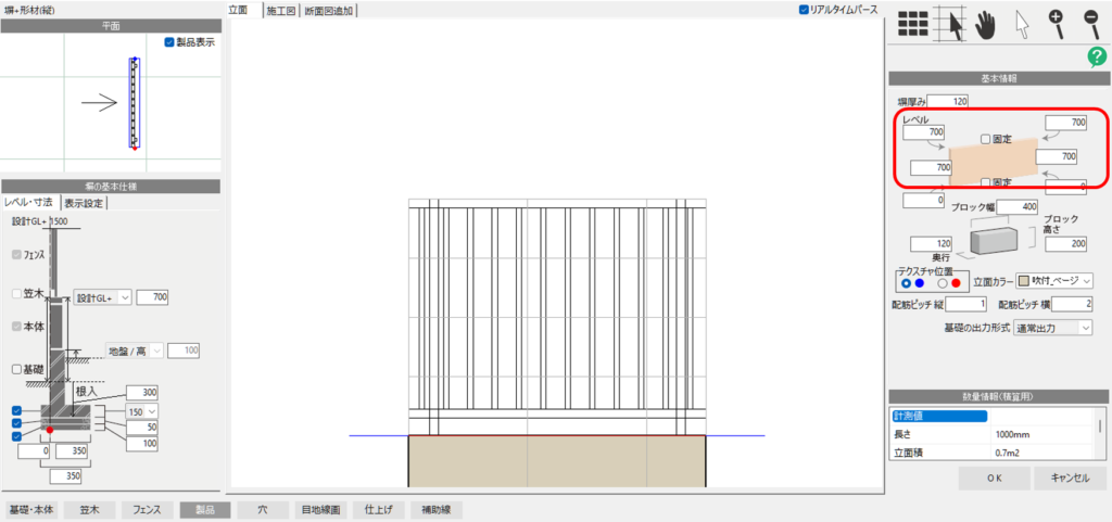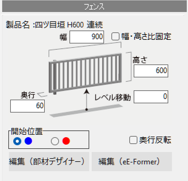 平面図上で塀をダブルクリックすると、塀の細かな調整メニュー(塀デザイナー)が起動します。