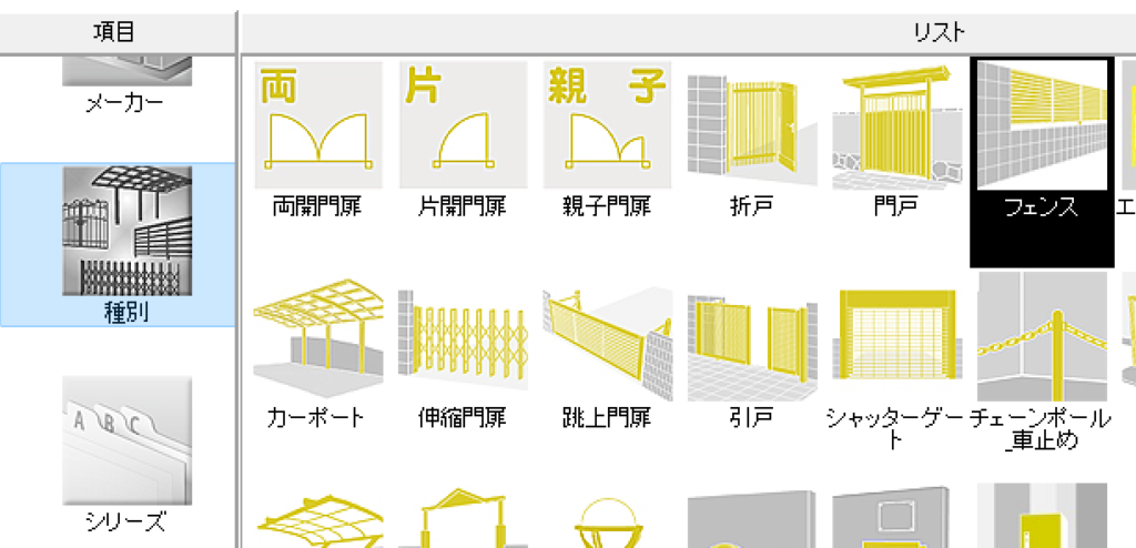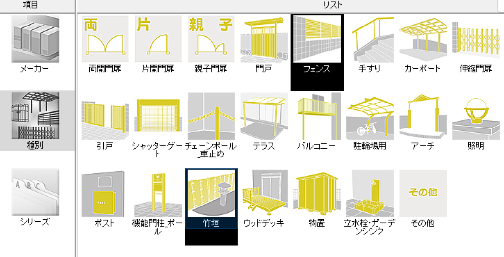 ここでは「メーカー」は「エクステリア一般」を選択します。