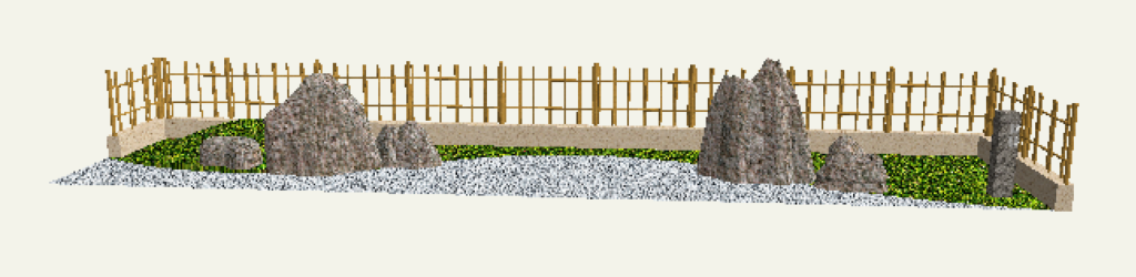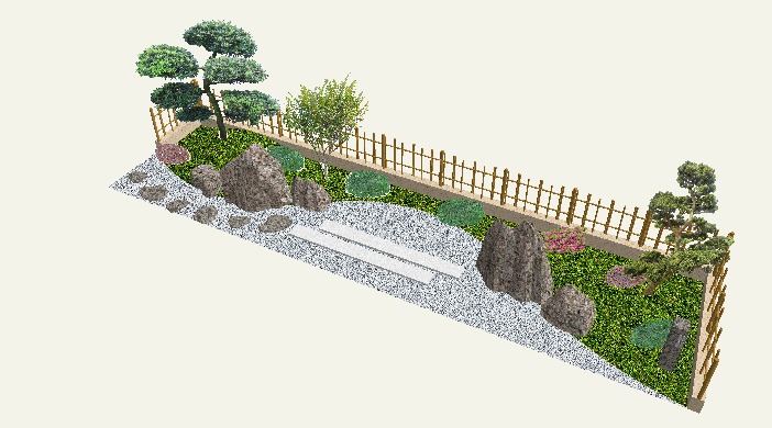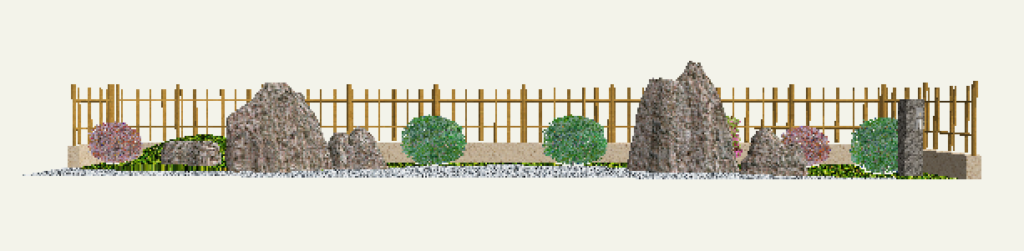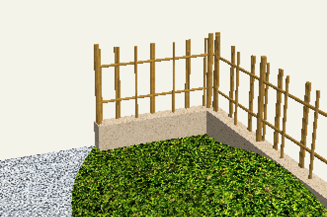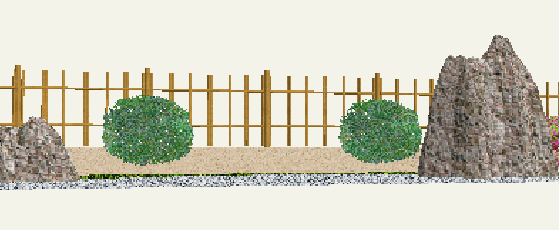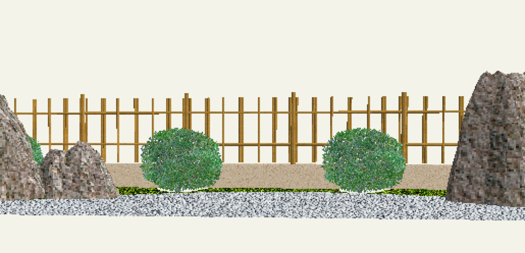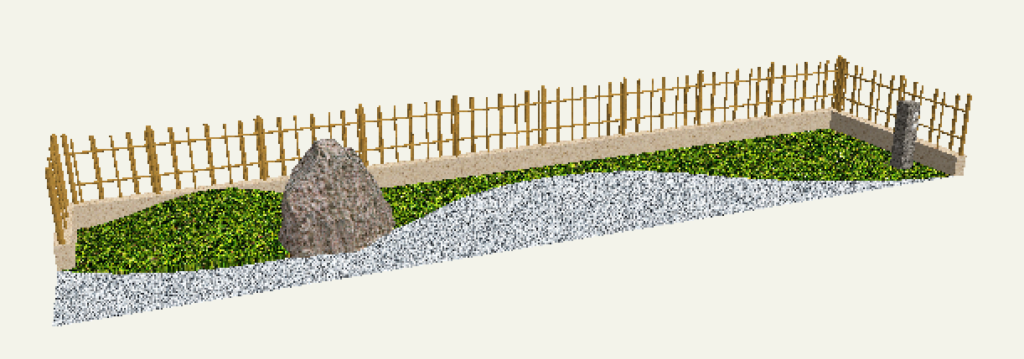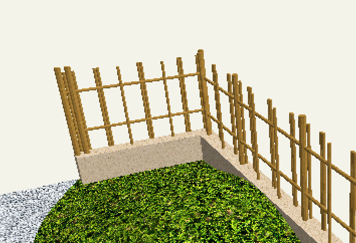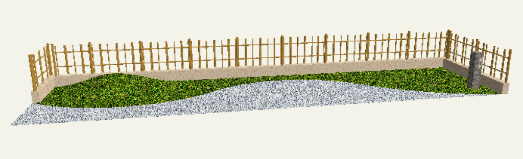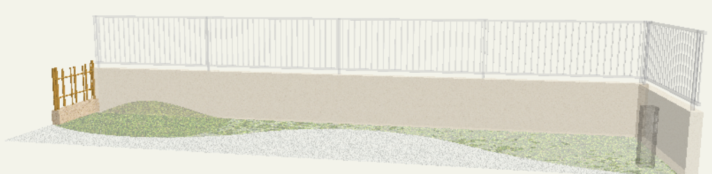 リアルタイムパースで確認すると指定した塀とフェンスが竹垣に変わっていることがわかります。