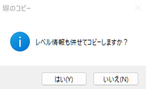 「レベル情報も併せてコピーしますか?」で「はい」を選択すると、対象のレベル情報も丸ごとコピーします。