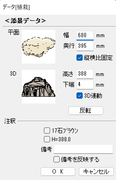 このとき、植栽や飛び石など対象のユニットに対してドロップするとその内容を自動で表示してくれます。