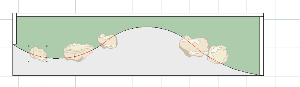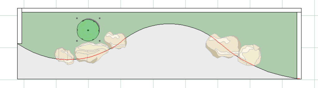 左下にある図形を、築山を築きたいところにドロップします。