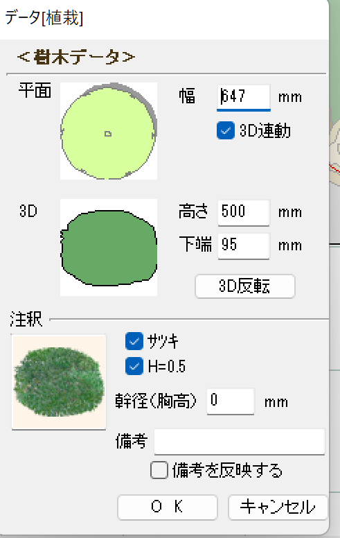 植栽の注釈を自動で一括入力する方法