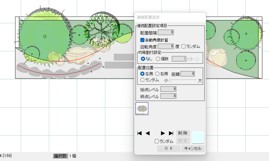 便利な機能の一つに、指定した補助線に沿ってランダムに飛び石を並べる機能もあります。