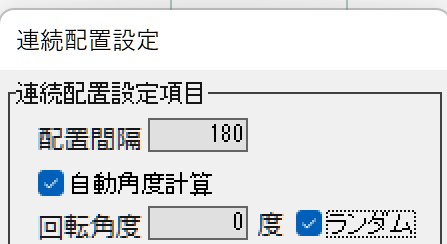 角度をランダムにするには「回転角度」の横にある「ランダム」にチェックを入れます。