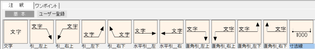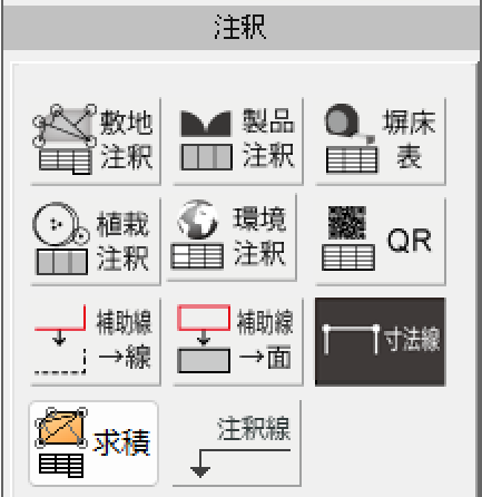 マニュアルで入力するには、「注釈」レイヤーを選択したときに、右側に表示されているメニューの中の「寸法線」を選びます。