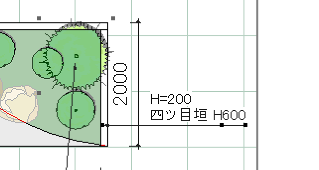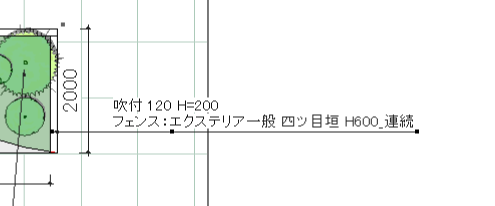 「ユニット」レイヤーを選択した状態で、平面図上のフェンスを選択します。