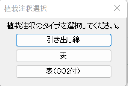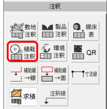 「注釈」レイヤー選択時に右側に表示される「植栽注釈」を選択します。