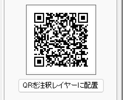 下側にある「QRを注釈レイヤーに配置」をクリックすると、詳細情報がしるされたページのQRコードを平面図に追加できます。