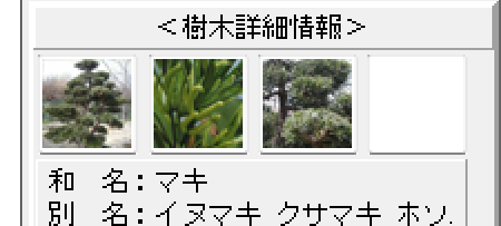 この状態で、平面図上の対象の木を選択すると、右側に「樹木詳細情報」が表示されます。