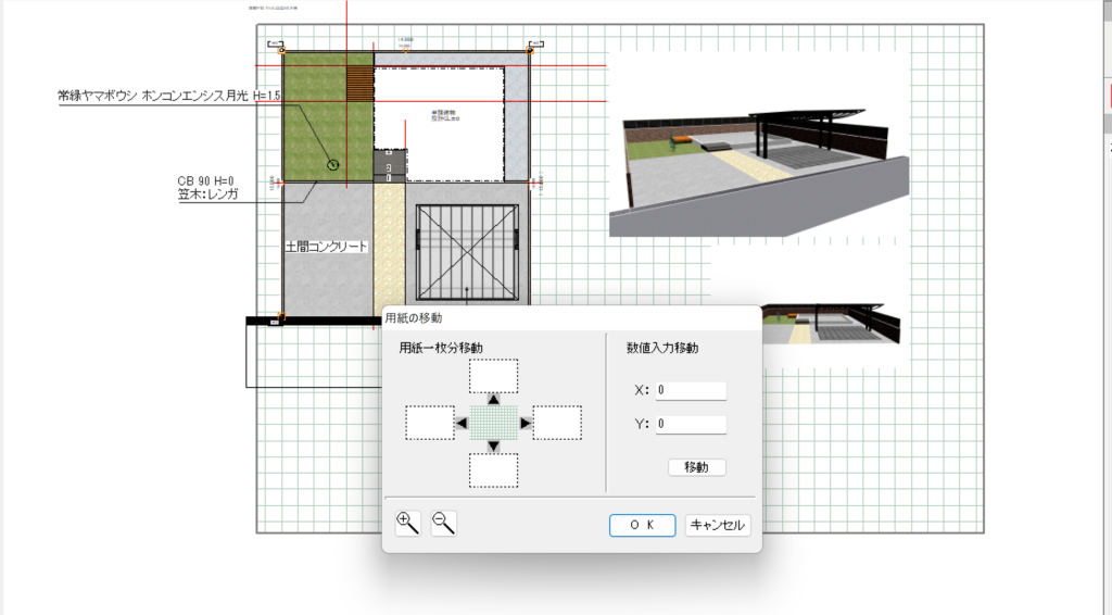 例えば、以下のように左上に集まってしまった平面図を中央に移動したいといった場合です。