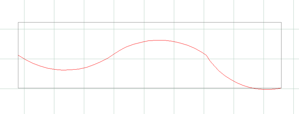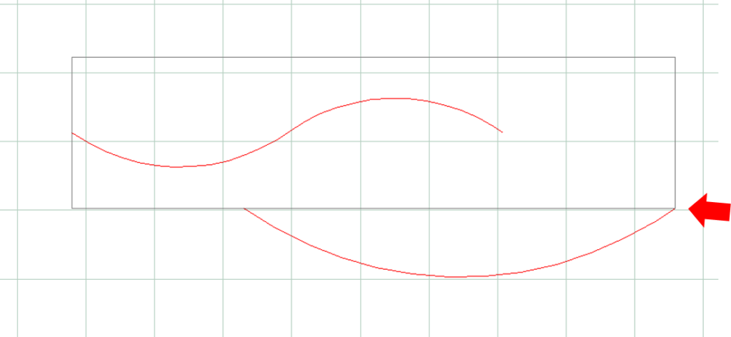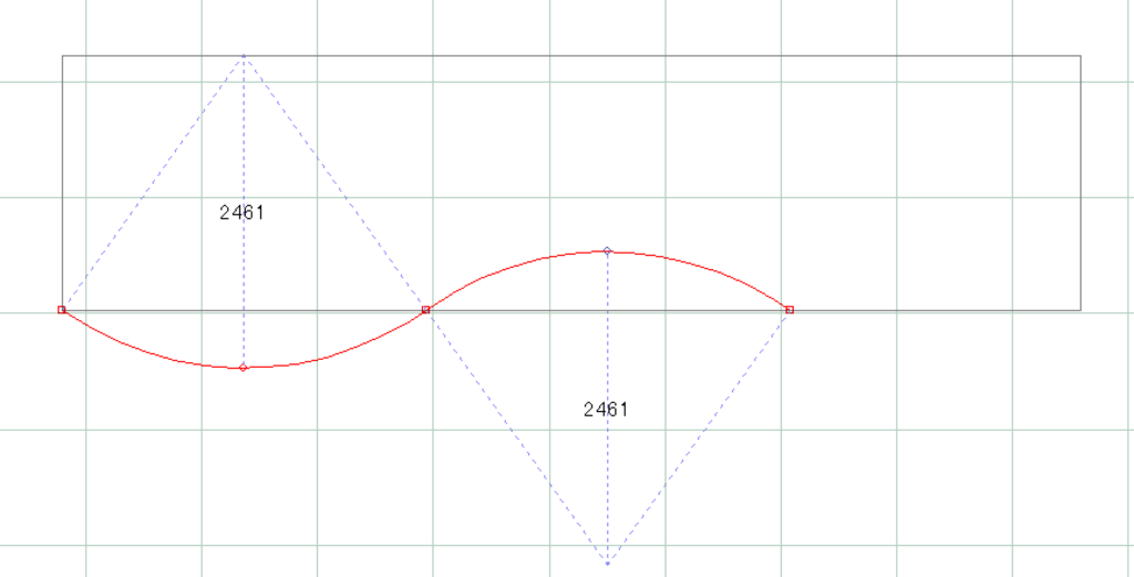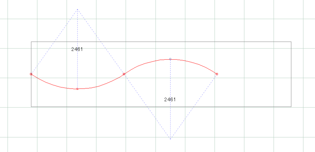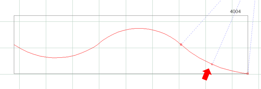 結合部分が滑らかになるように調整します。補助線の真ん中の点を上に押し上げます。